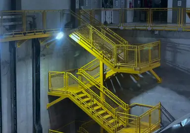 Fabricação e instalação de plataformas, guarda-corpos e escadas modulares em Pequena Central Hidrelétrica.